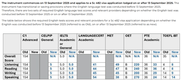 SID 482 的英文要求根据提名职业、流和政策工具而定,但通常要求达到一定的雅思或等效成绩。政策在 2025 年 9 月起进行了更新,建议参考最新政策说明。