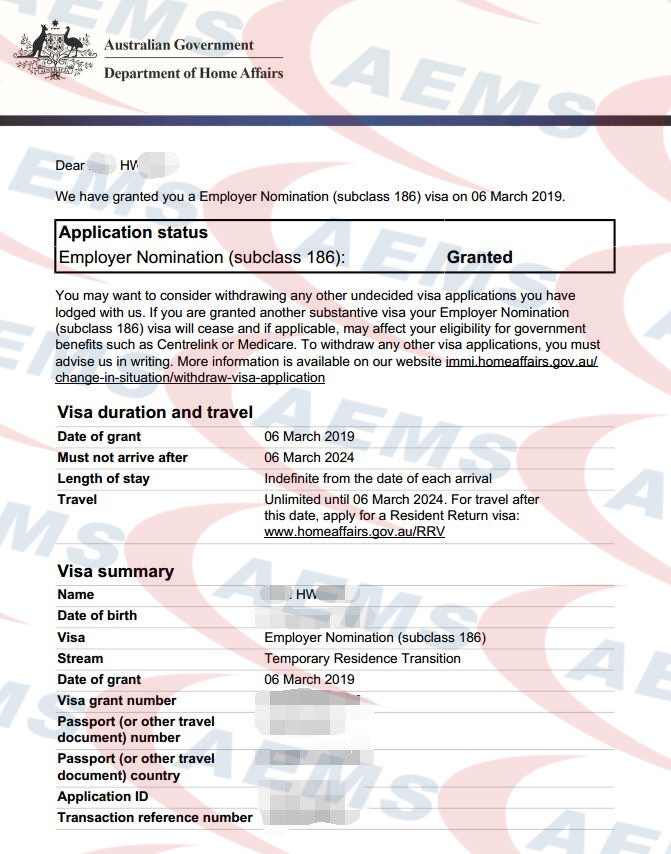 AEMS恭喜H先生186永居签证顺利获批! —— 06/03/2019