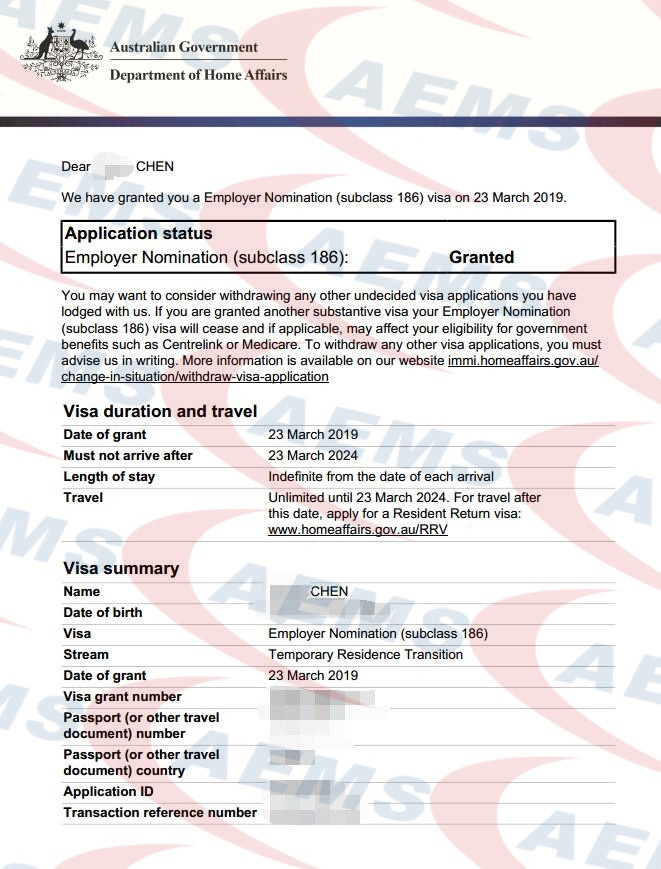 AEMS恭喜陈女士186永居签证顺利获批! —— 23/03/2019