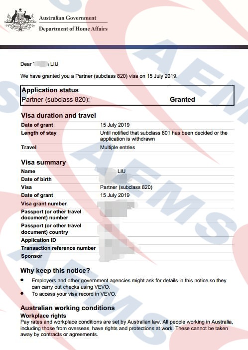 AEMS恭喜刘女士820配偶签证顺利获批!——15/07/2019