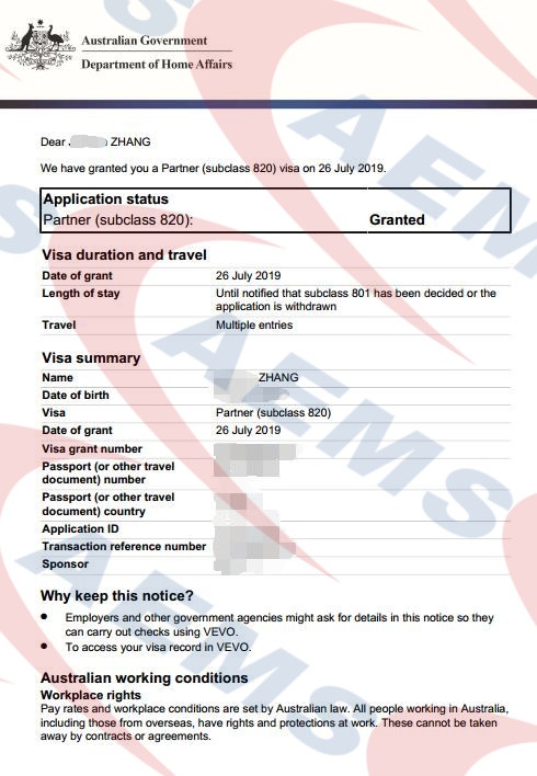 AEMS恭喜张女士820配偶签证顺利获批!—— 26/07/2019
