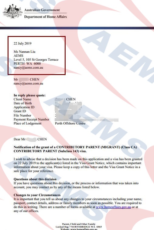 AEMS 恭喜陈先生143父母移民永居签证顺利获批!—— 22/07/2017